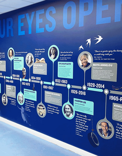 Transform corridors, classrooms, and communal spaces with wall graphics that inspire learning and celebrate identity. From motivational messaging to large-scale displays of school values, history, or achievements, we design graphics that create a lasting impact on students, staff, and visitors alike.